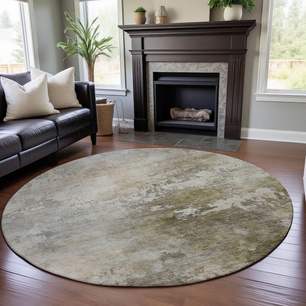 Mayfield Premium Machine Washable Abstract AMF1158 Wheat 8 ft. x 8 ft. Round Rug