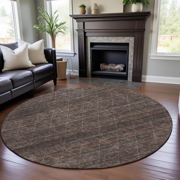 Mayfield Premium Machine Washable Abstract AMF1165 Coffee 8 ft. x 8 ft. Round Rug