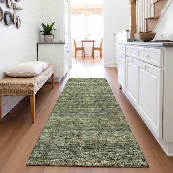 Mayfield Premium Machine Washable Abstract AMF1165 Olive 2 ft. 3 in. x 7 ft. 6 in. Runner Rug