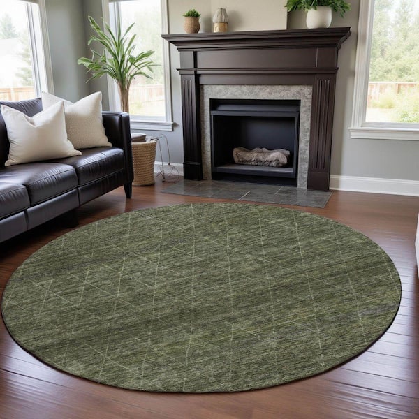 Mayfield Premium Machine Washable Abstract AMF1165 Olive 8 ft. x 8 ft. Round Rug