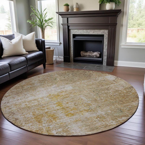 Mayfield Premium Machine Washable Abstract AMF1169 Gold 8 ft. x 8 ft. Round Rug