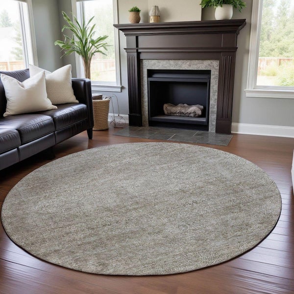 Mayfield Premium Machine Washable Abstract AMF1172 Linen 8 ft. x 8 ft. Round Rug