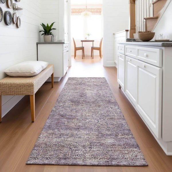 Mayfield Premium Machine Washable Abstract AMF1172 Plum 2 ft. 3 in. x 7 ft. 6 in. Runner Rug