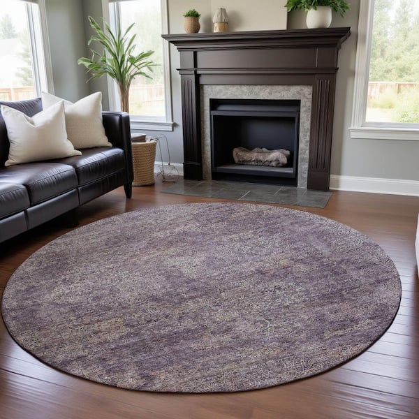 Mayfield Premium Machine Washable Abstract AMF1172 Plum 8 ft. x 8 ft. Round Rug
