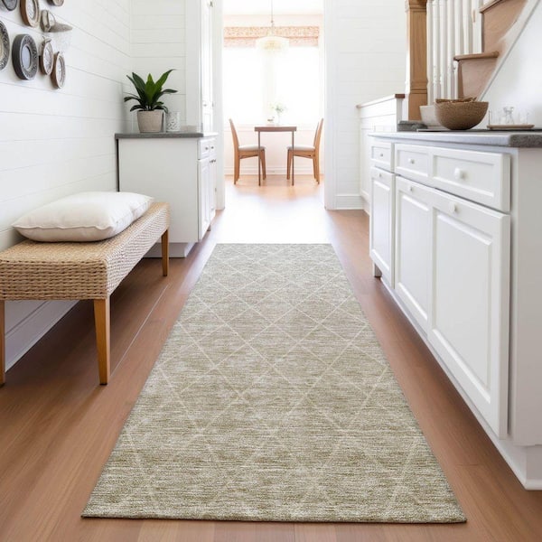 Mayfield Premium Machine Washable Abstract AMF1175 Taupe 2 ft. 3 in. x 7 ft. 6 in. Runner Rug