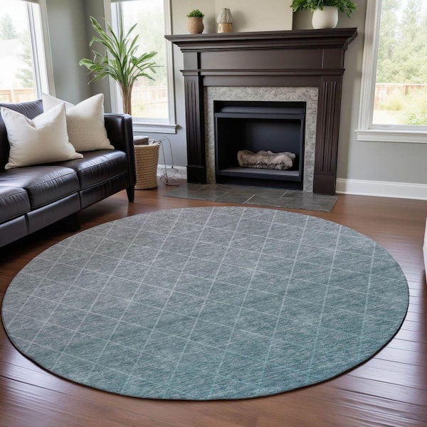 Mayfield Premium Machine Washable Abstract AMF1175 Teal 8 ft. x 8 ft. Round Rug
