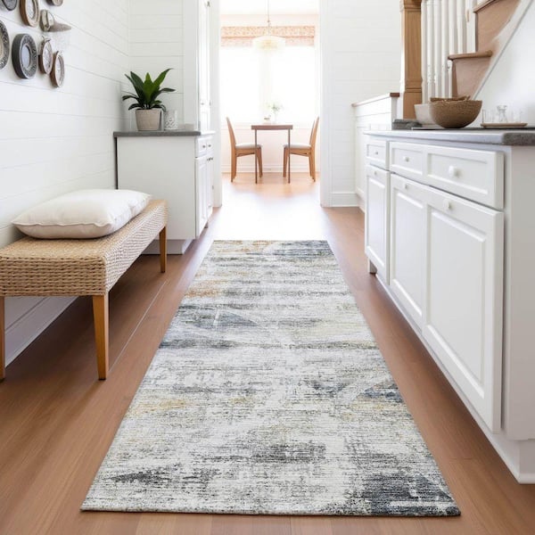 Mayfield Premium Machine Washable Abstract AMF1178 Silver 2 ft. 3 in. x 7 ft. 6 in. Runner Rug