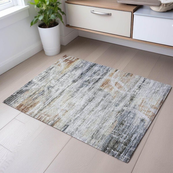 Mayfield Premium Machine Washable Abstract AMF1178 Silver 2 ft. x 3 ft. Area Rug