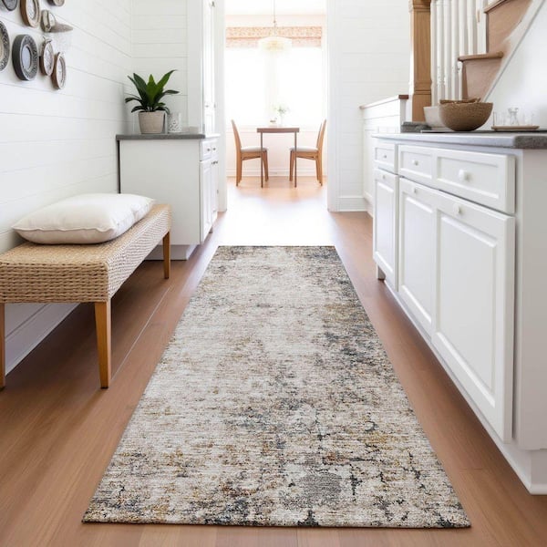 Mayfield Premium Machine Washable Abstract AMF1179 Putty 2 ft. 3 in. x 7 ft. 6 in. Runner Rug