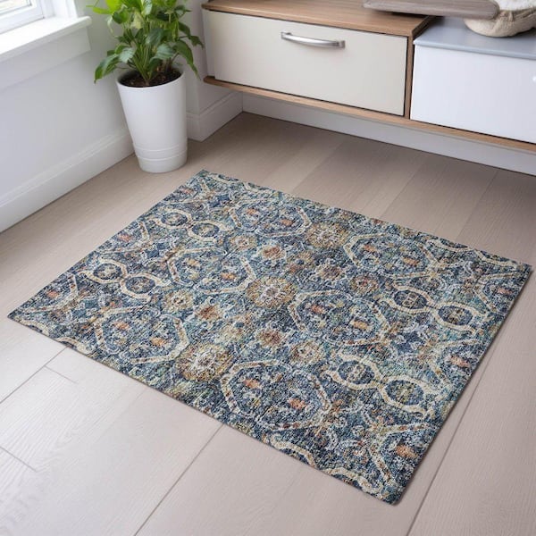 Mayfield Premium Machine Washable Abstract AMF1181 Denim 2 ft. x 3 ft. Area Rug