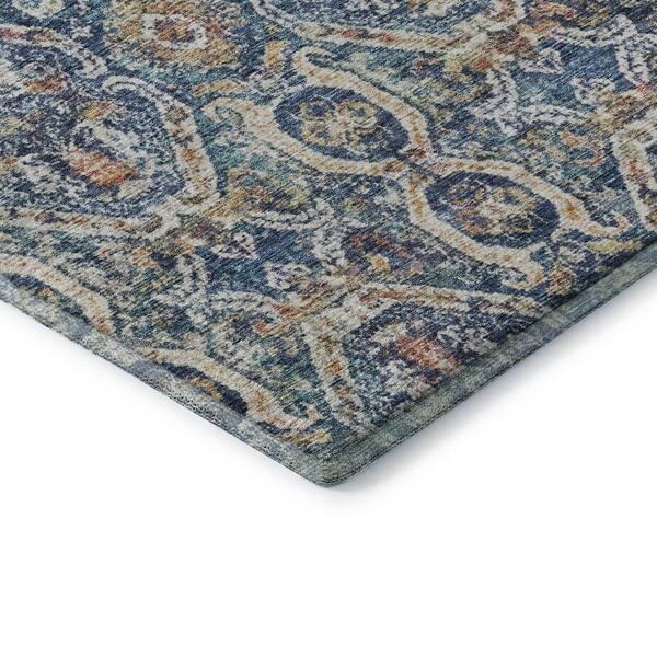 Mayfield Premium Machine Washable Abstract AMF1181 Denim 8 ft. x 8 ft. Round Rug