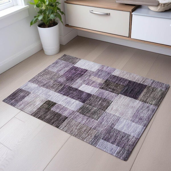 Mayfield Premium Machine Washable Abstract AMF1190 Eggplant 2 ft. x 3 ft. Area Rug