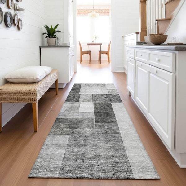 Mayfield Premium Machine Washable Abstract AMF1190 Pewter 2 ft. 3 in. x 7 ft. 6 in. Runner Rug