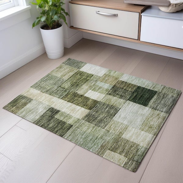 Mayfield Premium Machine Washable Abstract AMF1190 Sage 2 ft. x 3 ft. Area Rug