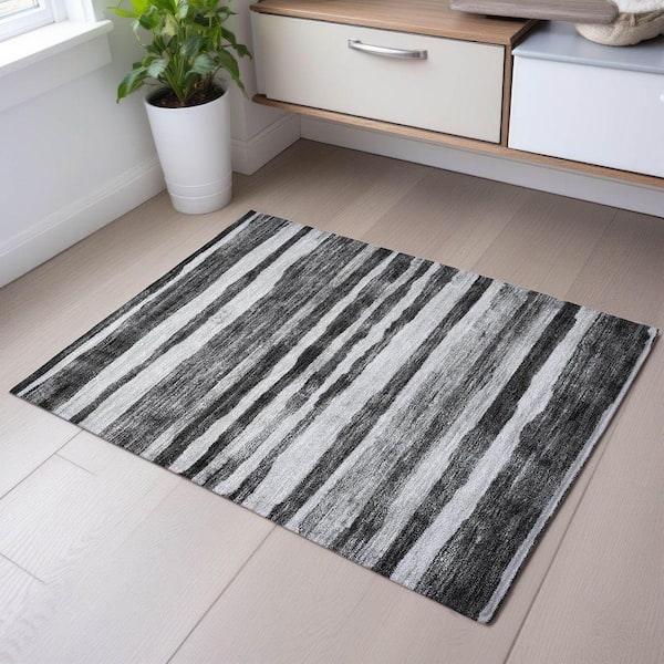 Mayfield Premium Machine Washable Abstract AMF1191 Charcoal 2 ft. x 3 ft. Area Rug