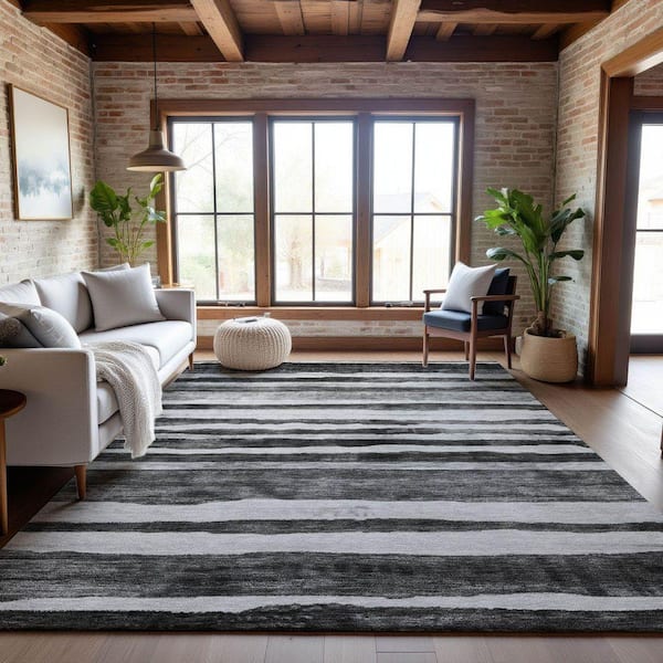 Mayfield Premium Machine Washable Abstract AMF1191 Charcoal 8 ft. x 10 ft. Area Rug
