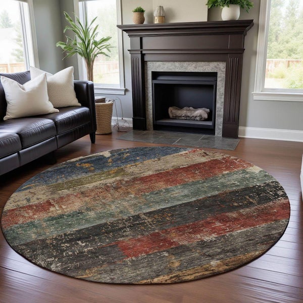 Mayfield Premium Machine Washable Abstract AMF1198 Fern 8 ft. x 8 ft. Round Rug