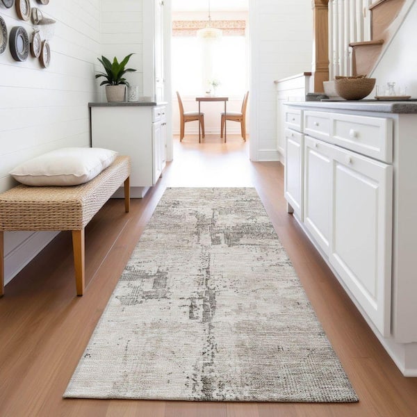 Mayfield Premium Machine Washable Abstract AMF1200 Linen 2 ft. 3 in. x 7 ft. 6 in. Runner Rug
