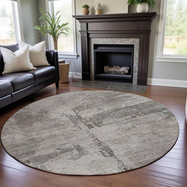 Mayfield Premium Machine Washable Abstract AMF1200 Linen 8 ft. x 8 ft. Round Rug