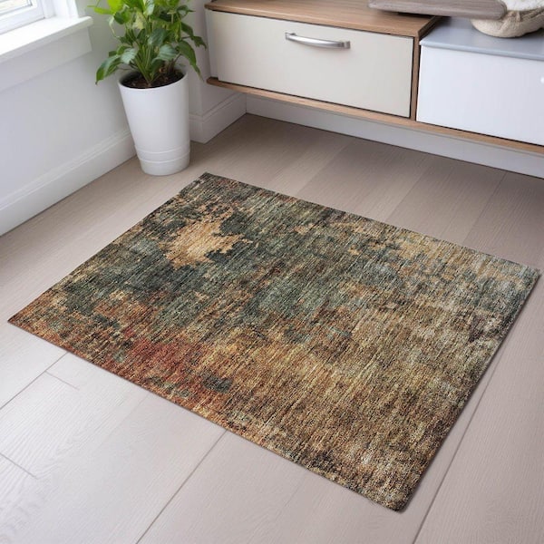 Mayfield Premium Machine Washable Abstract AMF1211 Sage 2 ft. x 3 ft. Area Rug