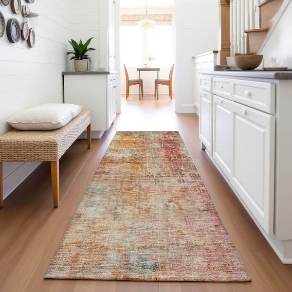 Mayfield Premium Machine Washable Abstract AMF1213 Tan 2 ft. 3 in. x 7 ft. 6 in. Runner Rug