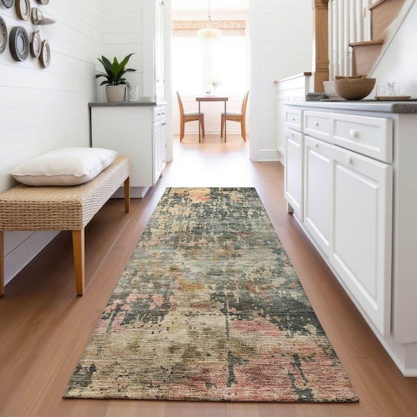 Mayfield Premium Machine Washable Abstract AMF1214 Sage 2 ft. 3 in. x 7 ft. 6 in. Runner Rug