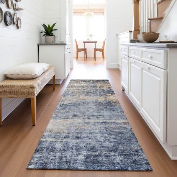 Mayfield Premium Machine Washable Abstract AMF1217 Denim 2 ft. 3 in. x 7 ft. 6 in. Runner Rug