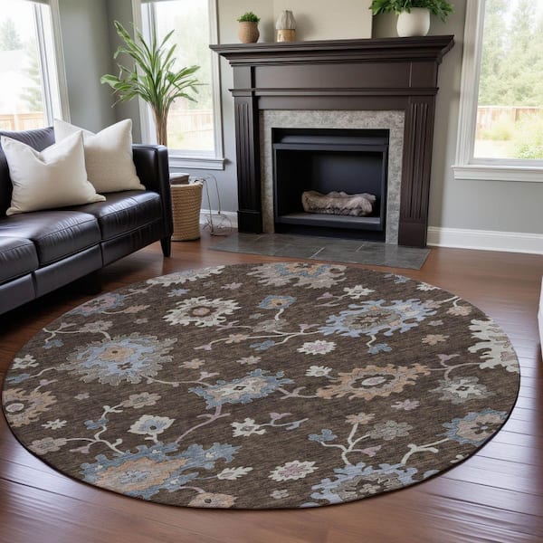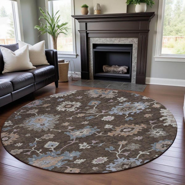 Mayfield Premium Machine Washable Abstract AMF1218 Chocolate 8 ft. x 8 ft. Round Rug