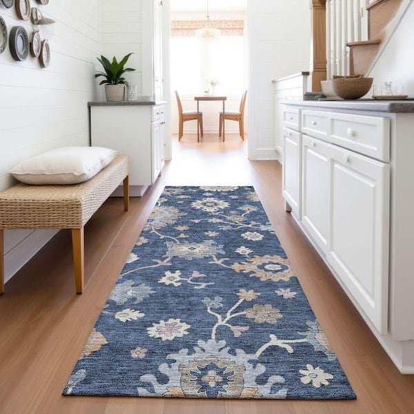 Mayfield Premium Machine Washable Abstract AMF1218 Navy 2 ft. 3 in. x 7 ft. 6 in. Runner Rug