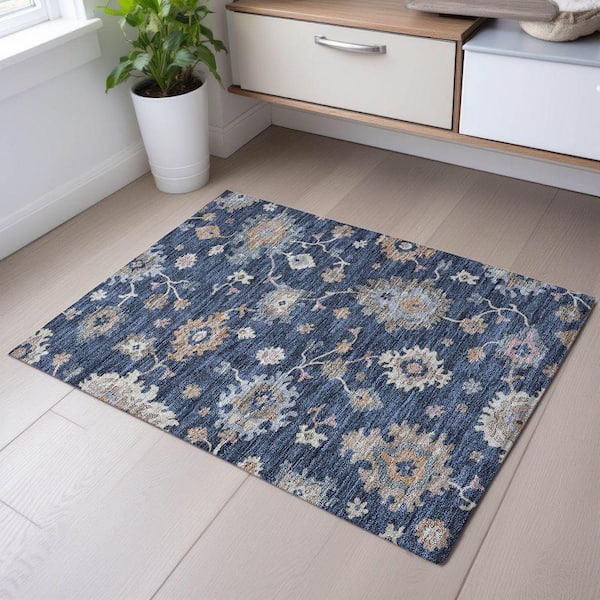 Mayfield Premium Machine Washable Abstract AMF1218 Navy 2 ft. x 3 ft. Area Rug