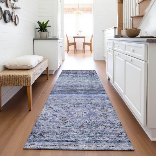 Mayfield Premium Machine Washable Abstract AMF1219 Blue 2 ft. 3 in. x 7 ft. 6 in. Runner Rug