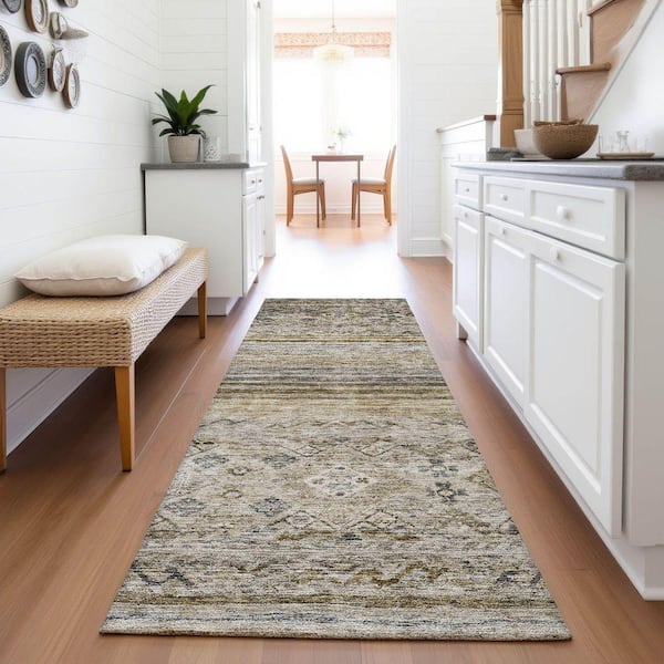 Mayfield Premium Machine Washable Abstract AMF1219 Brown 2 ft. 3 in. x 7 ft. 6 in. Runner Rug