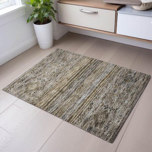 Mayfield Premium Machine Washable Abstract AMF1219 Brown 2 ft. x 3 ft. Area Rug