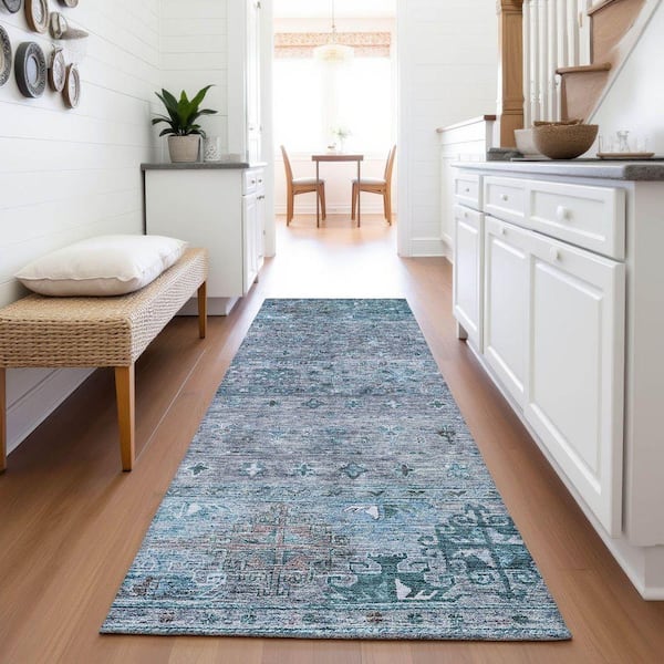 Mayfield Premium Machine Washable Abstract AMF1220 Blue 2 ft. 3 in. x 7 ft. 6 in. Runner Rug