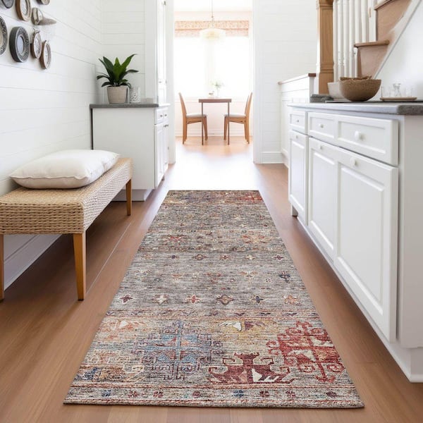 Mayfield Premium Machine Washable Abstract AMF1220 Gray 2 ft. 3 in. x 7 ft. 6 in. Runner Rug