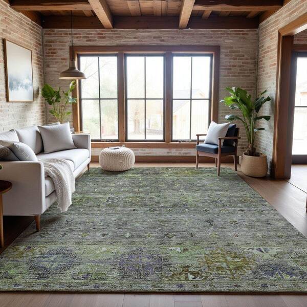 Mayfield Premium Machine Washable Abstract AMF1220 Sage 5 ft. x 7 ft. 6 in. Area Rug