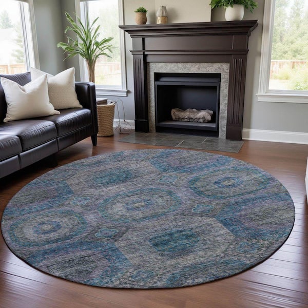 Mayfield Premium Machine Washable Abstract AMF1221 Blue 8 ft. x 8 ft. Round Rug