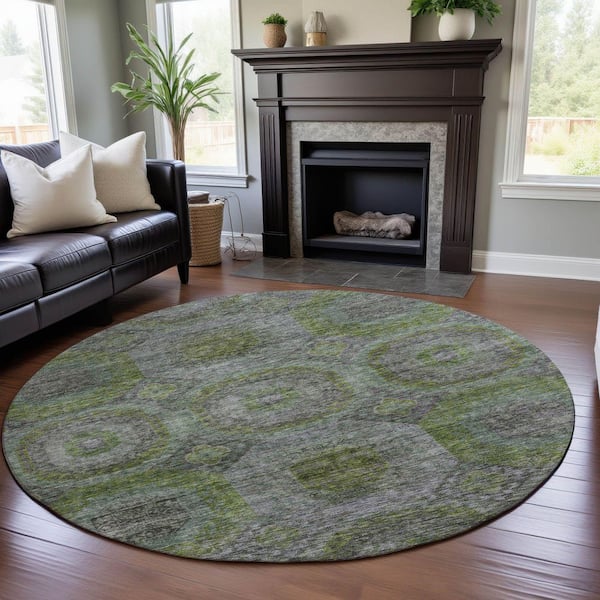 Mayfield Premium Machine Washable Abstract AMF1221 Olive 8 ft. x 8 ft. Round Rug