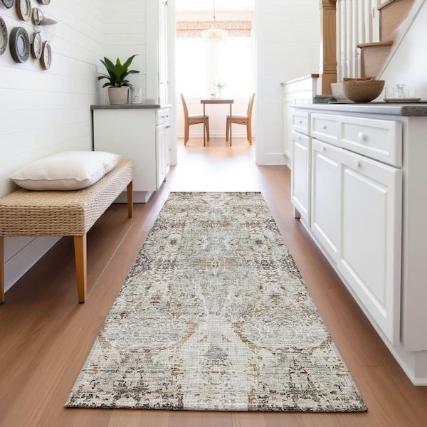 Mayfield Premium Machine Washable Abstract AMF1222 Linen 2 ft. 3 in. x 7 ft. 6 in. Runner Rug