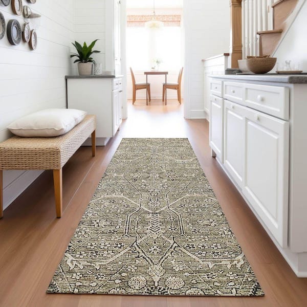 Mayfield Premium Machine Washable Abstract AMF1223 Khaki 2 ft. 3 in. x 7 ft. 6 in. Runner Rug