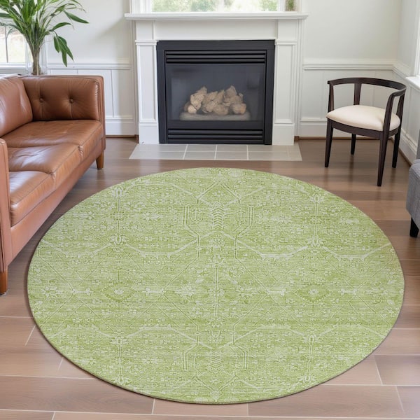 Mayfield Premium Machine Washable Abstract AMF1224 Mint 8 ft. x 8 ft. Round Rug