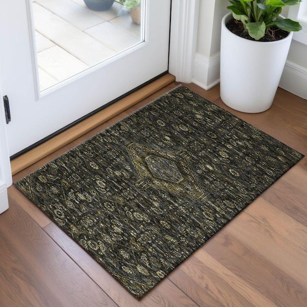 Mayfield Premium Machine Washable Abstract AMF1225 Charcoal 2 ft. x 3 ft. Area Rug