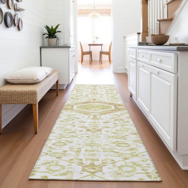 Mayfield Premium Machine Washable Abstract AMF1225 Ivory 2 ft. 3 in. x 7 ft. 6 in. Runner Rug