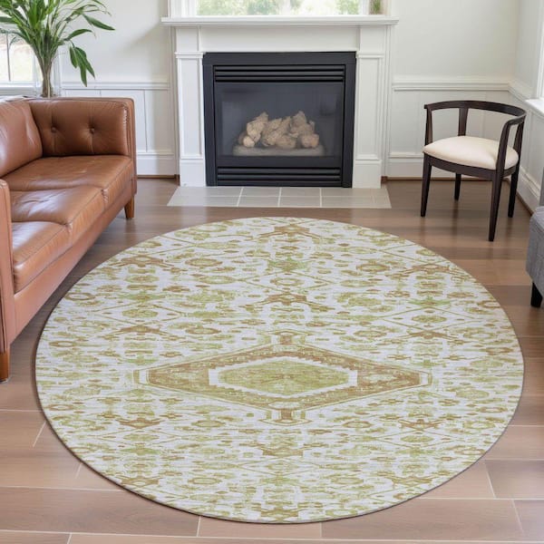 Mayfield Premium Machine Washable Abstract AMF1225 Ivory 8 ft. x 8 ft. Round Rug