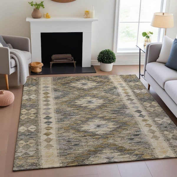Mayfield Premium Machine Washable Abstract AMF1226 Beige 5 ft. x 7 ft. 6 in. Area Rug