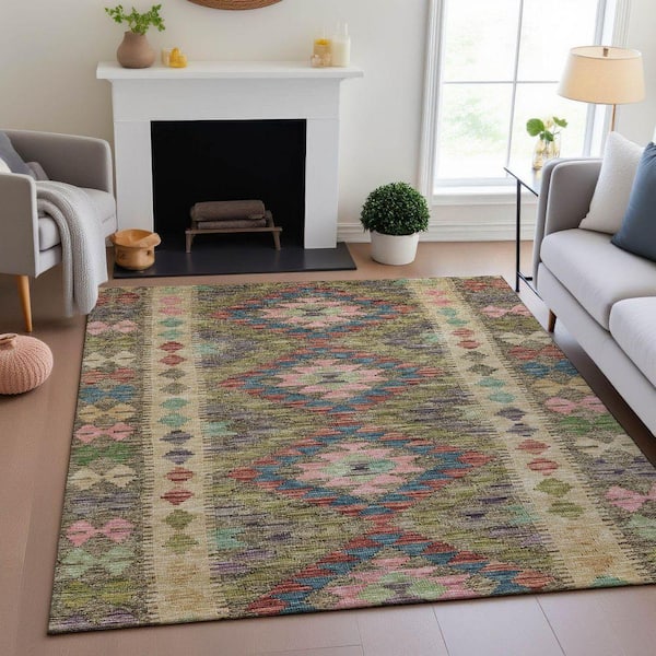 Mayfield Premium Machine Washable Abstract AMF1226 Green 3 ft. x 4 ft. Area Rug