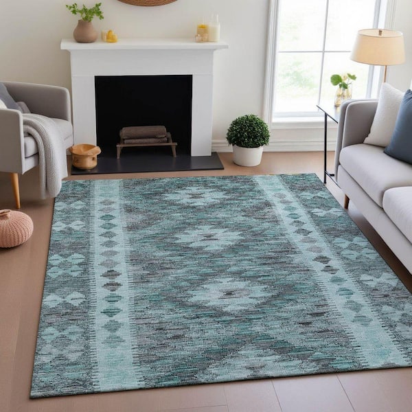 Mayfield Premium Machine Washable Abstract AMF1226 Teal 9 ft. x 12 ft. Area Rug