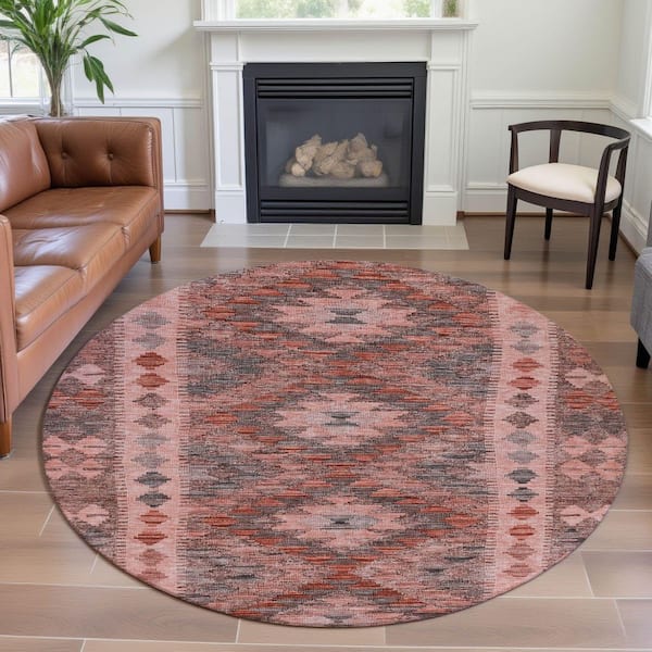 Mayfield Premium Machine Washable Abstract AMF1226 Terracotta 8 ft. x 8 ft. Round Rug