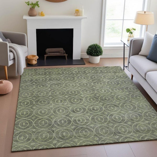 Mayfield Premium Machine Washable Abstract AMF1227 Aloe 3 ft. x 5 ft. Area Rug