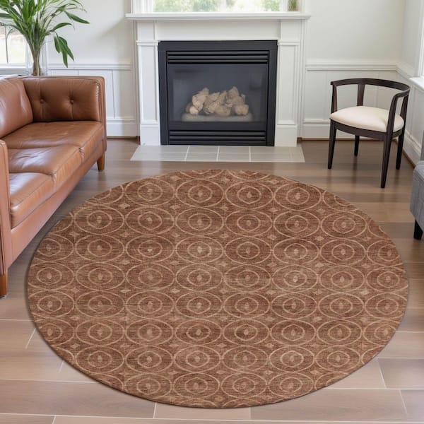 Mayfield Premium Machine Washable Abstract AMF1227 Terracotta 8 ft. x 8 ft. Round Rug